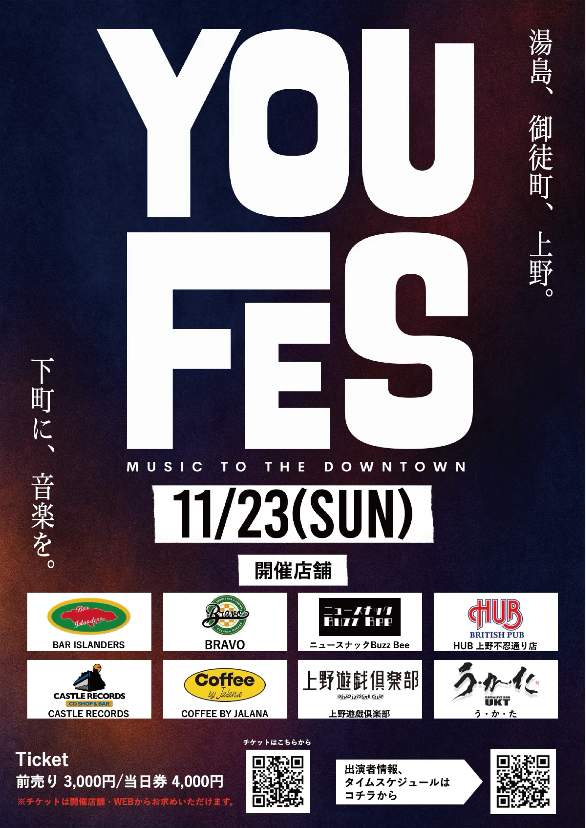 心地の良いサウンドとお酒、そして仲間たちと YOU タウン(湯島・御徒町・上野)にてお楽しみ頂けます。